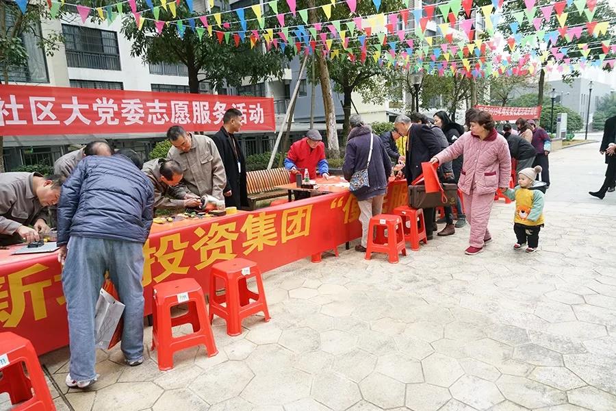在新春佳節(jié)即將來臨之際,為深入助力文明城區(qū)創(chuàng)建,提升居民幸福感,營造春節(jié)的節(jié)日氣氛,1月23日上午,新城投資集團(tuán)黨支部聯(lián)合環(huán)湖社區(qū)黨支部、宏謀物業(yè)公司在國惠村開展了“便民服務(wù)驛站”國惠村專場暨“喜迎新春寫對聯(lián) 書香情滿送祝?!被顒?,為居民維修家電,送上春聯(lián),帶去節(jié)日的問候。新城投資集團(tuán)黨支部書記周道林,副書記鄧仁友,工會主席譚力源,環(huán)湖社區(qū)黨支部書記李伊倩,宏謀物業(yè)公司總經(jīng)理劉孝國出席了活動。1