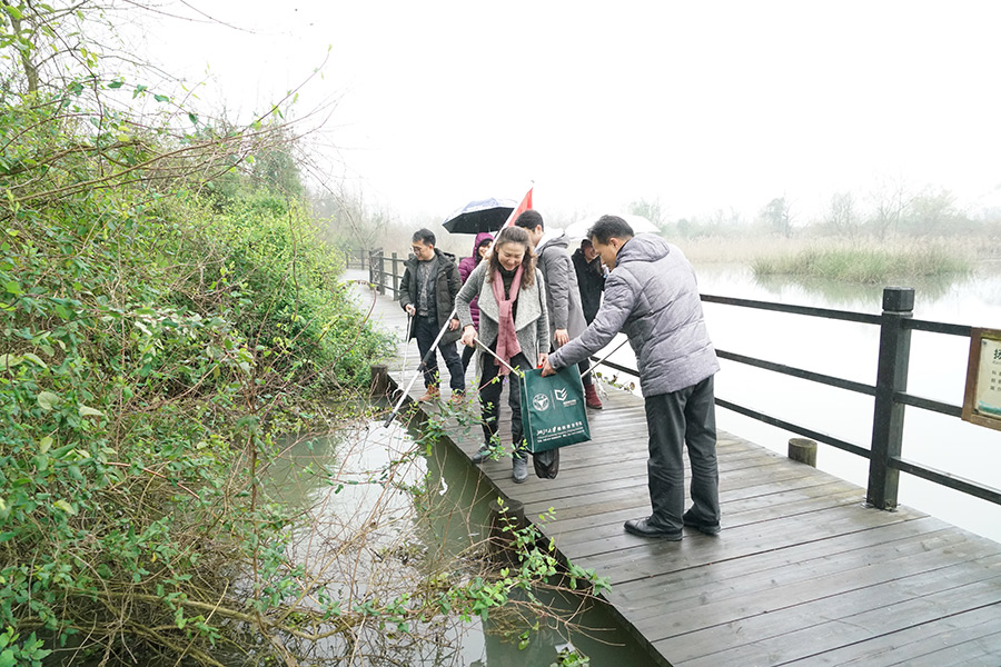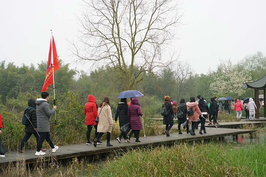 桂林會仙濕地管理局為“會仙濕地洗臉”環(huán)保徒步活動提供了向導并安排專人講解了規(guī)劃。婦女同志在濕地宣教館觀看宣傳片后,分別領取鐵鉗、垃圾袋,沿著濕地棧道方向,邊走邊用鐵鉗拾撿著路邊的食品袋、塑料袋、飲料瓶等污染垃圾,不一會兒功夫,大伙兒拎著的垃圾袋已快填充裝滿。過往的群眾為婦女同志不怕臟不怕累的志愿行動所感動,紛紛豎起大拇指點贊,部分群眾還自發(fā)的加入為濕地洗臉公益環(huán)?;顒印?nbsp;
