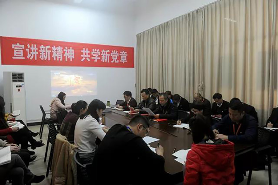 2018年2月28日上午,根據(jù)中共桂林市臨桂新區(qū)工作委員會(huì)關(guān)于學(xué)習(xí)貫徹十九大精神學(xué)習(xí)培訓(xùn)工作方案的安排,新城投資集團(tuán)黨支部組織全體黨員、入黨積極分子對(duì)新《黨章》進(jìn)行宣講學(xué)習(xí)。新城投資集團(tuán)黨支部書(shū)記周道林做《宣講新精神 共學(xué)新黨章》主題宣講,對(duì)集團(tuán)公司貫徹落實(shí)黨的十九大精神,學(xué)習(xí)領(lǐng)會(huì)新《黨章》規(guī)定,把新《黨章》規(guī)定落實(shí)到各項(xiàng)工作中等方面工作做出安排。