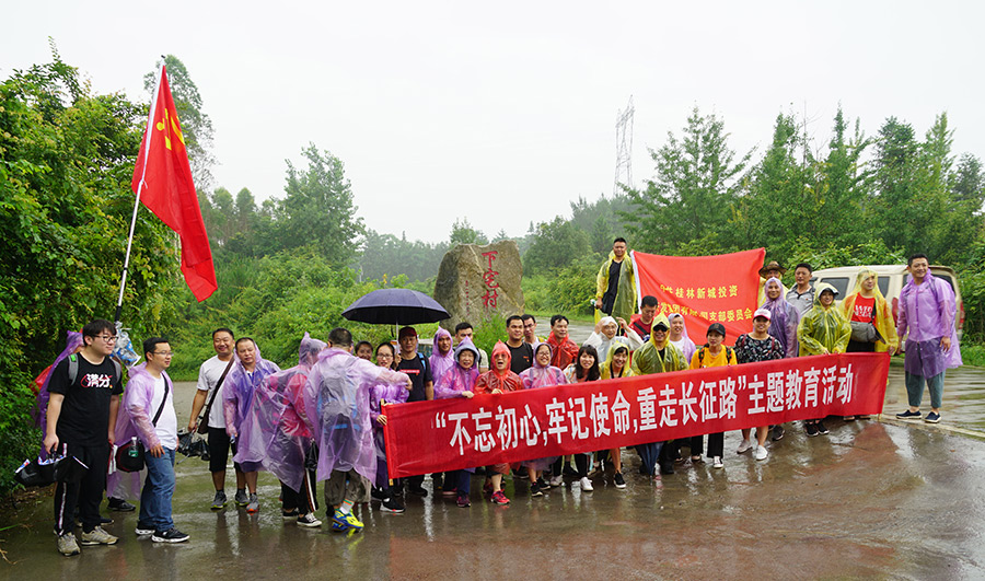 在中國共產(chǎn)黨建黨98周年之際,為進(jìn)一步提升支部黨員的黨性修養(yǎng),緬懷革命先輩,牢記革命歷史,繼承和弘揚(yáng)偉大的長征精神,6月27日,新城投資集團(tuán)黨支部全體黨員組織了“不忘初心,牢記使命,重走長征路”主題黨日活動,來到全州縣紹水鎮(zhèn)沿著紅軍當(dāng)年的足跡,追憶紅軍的光輝歲月,學(xué)習(xí)紅軍精神,開展重走長征路活動。臨桂新區(qū)工委委員、管委會副主任文杰,市紀(jì)委駐臨桂新區(qū)紀(jì)檢組副組長唐良平,新城投資集團(tuán)黨支部書記、總經(jīng)理周道林以普通黨員身份參加活動。