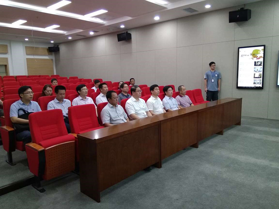 白松濤一行在二樓紅色影院觀看桂林黨建宣傳片