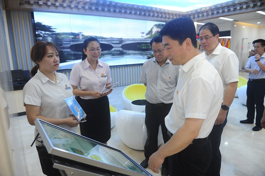 白松濤一行先后參觀了黨群業(yè)務(wù)受理區(qū)、便民生活服務(wù)區(qū)、黨史黨建工作展示區(qū)、智慧黨建區(qū)、黨群組織活動(dòng)區(qū)等服務(wù)區(qū)塊以及臨桂新區(qū)、新城投資集團(tuán)黨建展示廳,詳細(xì)了解了黨群服務(wù)中心的功能和試運(yùn)行情況。調(diào)研過(guò)程中白松濤對(duì)市黨群服務(wù)中心的建設(shè)工作給予肯定,對(duì)各廳的打造效果及建設(shè)速度表示認(rèn)可,同時(shí)強(qiáng)調(diào)要按照自治區(qū)人大常委會(huì)副主任,桂林市委書記、市人大常委會(huì)主任趙樂(lè)秦對(duì)中心提出“追求卓越”的目標(biāo),著力將市黨群服務(wù)中心,打造成為一個(gè)開放式、實(shí)體化、集約型、共享性、先鋒色的城市基層黨建紅色新地標(biāo),做到“廣西領(lǐng)先、全國(guó)一流”。