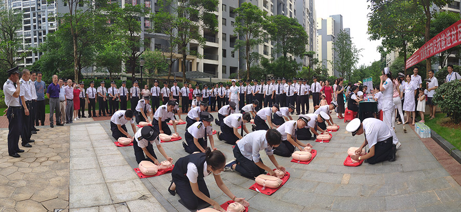 活動現(xiàn)場,應(yīng)急救護(hù)老師現(xiàn)場進(jìn)行教學(xué),從應(yīng)急救護(hù)的重要性入手,講解與演示并重,理論與操作結(jié)合,詳細(xì)講解了心肺復(fù)蘇術(shù)、呼吸道異物梗阻和溺水救護(hù)等方面的急救知識。并用人體模具為大家演示急救步驟和操作手法,指導(dǎo)在場人員對心肺復(fù)蘇術(shù)開展實(shí)操訓(xùn)練,同時(shí)結(jié)合實(shí)際工作中的案例手把手向大家傳授急救手法和注意事項(xiàng),對實(shí)操人員出現(xiàn)的錯(cuò)誤動作進(jìn)行細(xì)心的指正與解說。宏謀物業(yè)公司的護(hù)衛(wèi)隊(duì)員、船員,客服近百人、分5次參加了應(yīng)急救護(hù)培訓(xùn)。