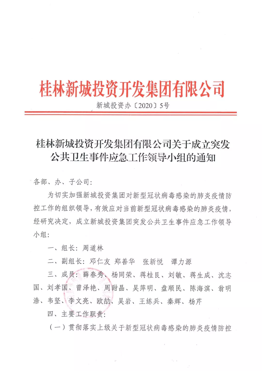 在新春佳節(jié)、闔家團聚之際,新型冠狀病毒感染肺炎疫情防控形勢十分嚴(yán)峻。黨中央對疫情防控工作高度重視,習(xí)近平總書記作出重要指示。自治區(qū)黨委、政府和市委、市政府正在密集部署疫情防控工作,為響應(yīng)切實打贏疫情防控狙擊戰(zhàn)的戰(zhàn)斗號召,新城投資集團黨支部書記、董事長、總經(jīng)理周道林要求集團公司迅速進入“戰(zhàn)時狀態(tài)”,堅決貫徹落實習(xí)近平總書記重要指示和講話精神,把抗擊疫情作為檢驗“不忘初心、牢記使命”主題教育成效的又一“試金石”,切實履行主體責(zé)任和工作職責(zé),及時掌握疫情,及時采取行動,做到守土有責(zé)、守土盡責(zé),堅決遏制疫情蔓延勢頭。