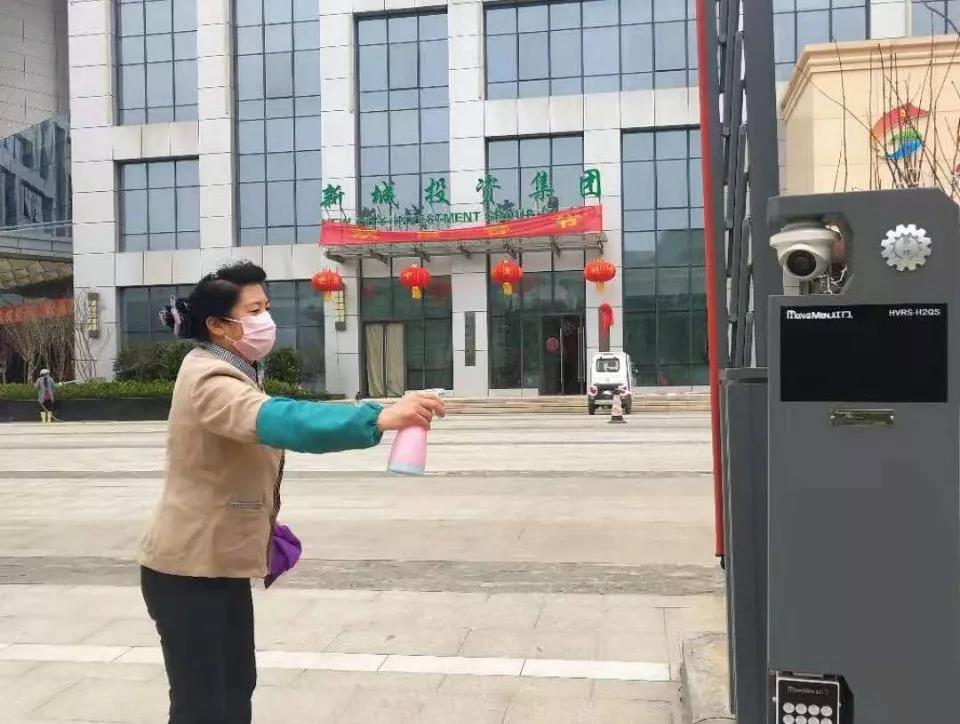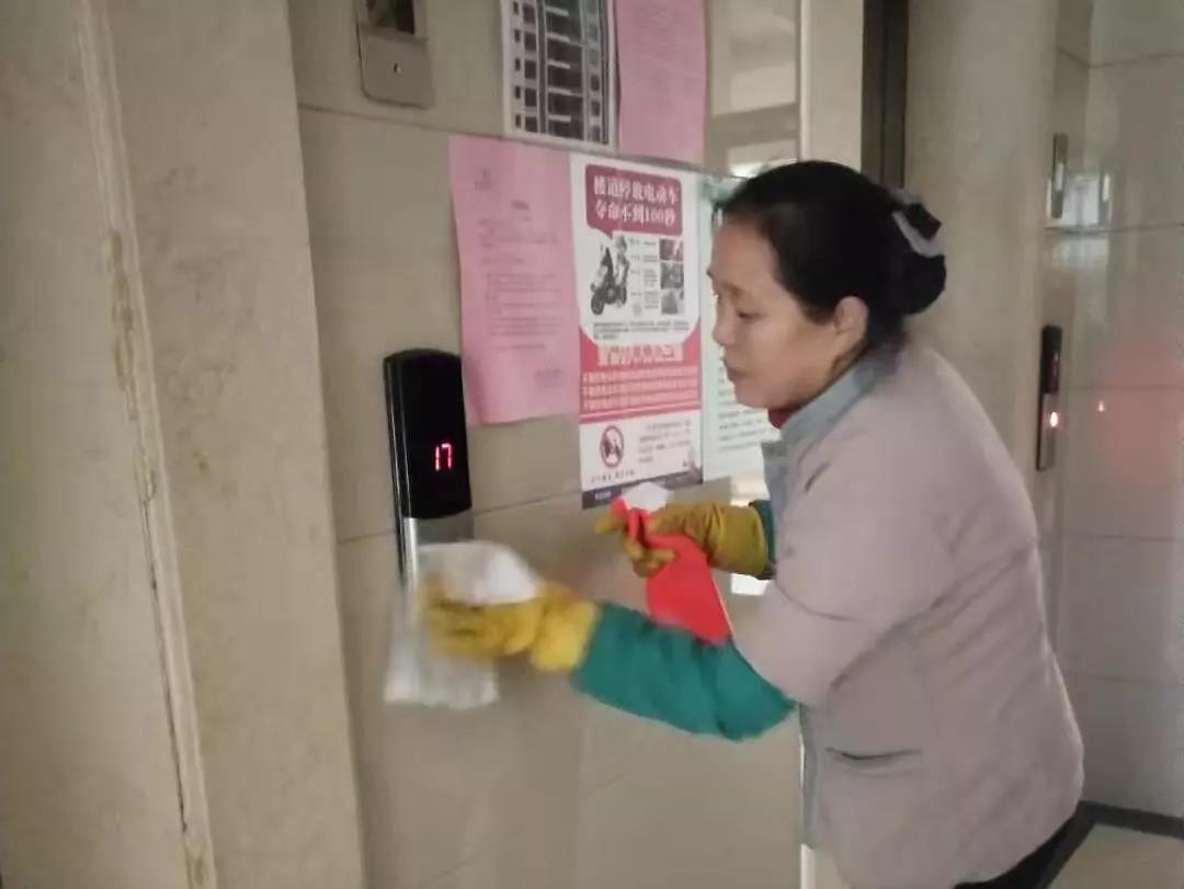 ▲新城投資集團(tuán)辦公樓項(xiàng)目對出入門廳、電梯、門把手、茶水間等位置進(jìn)行重點(diǎn)消毒。