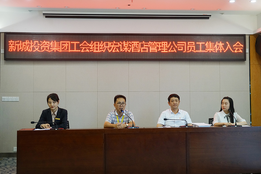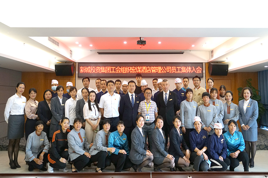 6月23日,新城投資集團(tuán)工會(huì)舉辦宏謀酒店管理公司108名員工集體加入集團(tuán)工會(huì)儀式。