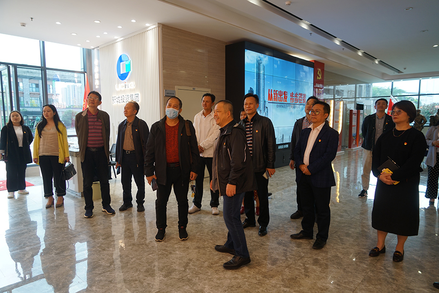 2020年10月16日,中共南寧市住房城鄉(xiāng)建設行業(yè)委員會黨委書記、南寧市建筑業(yè)聯(lián)合會會長李宗澤 ,南寧市建筑業(yè)聯(lián)合會顧問馮仕文,南寧市建筑業(yè)聯(lián)合會秘書長黃繼先,南寧市建筑業(yè)聯(lián)合會副秘書長賴彥君,廣西啟盛建設集團有限公司總經(jīng)理、南寧市建筑業(yè)聯(lián)合會理事鄧國璋等一行組成考察學習組,在新城投資集團黨總支書記、董事長、總經(jīng)理周道林的陪同下參觀了集團黨建展示區(qū),雙方就國企黨建如何促進項目建設發(fā)展等內(nèi)容進行交流。