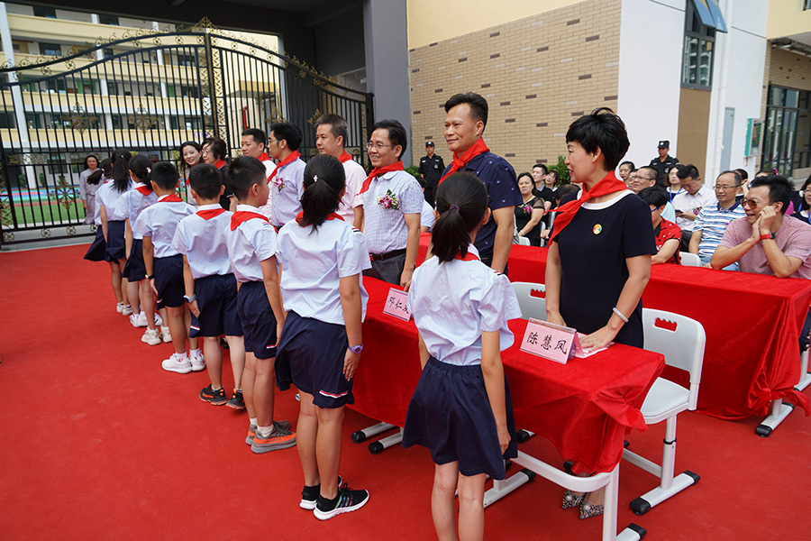 少先隊(duì)員給領(lǐng)導(dǎo)嘉賓敬獻(xiàn)紅領(lǐng)巾