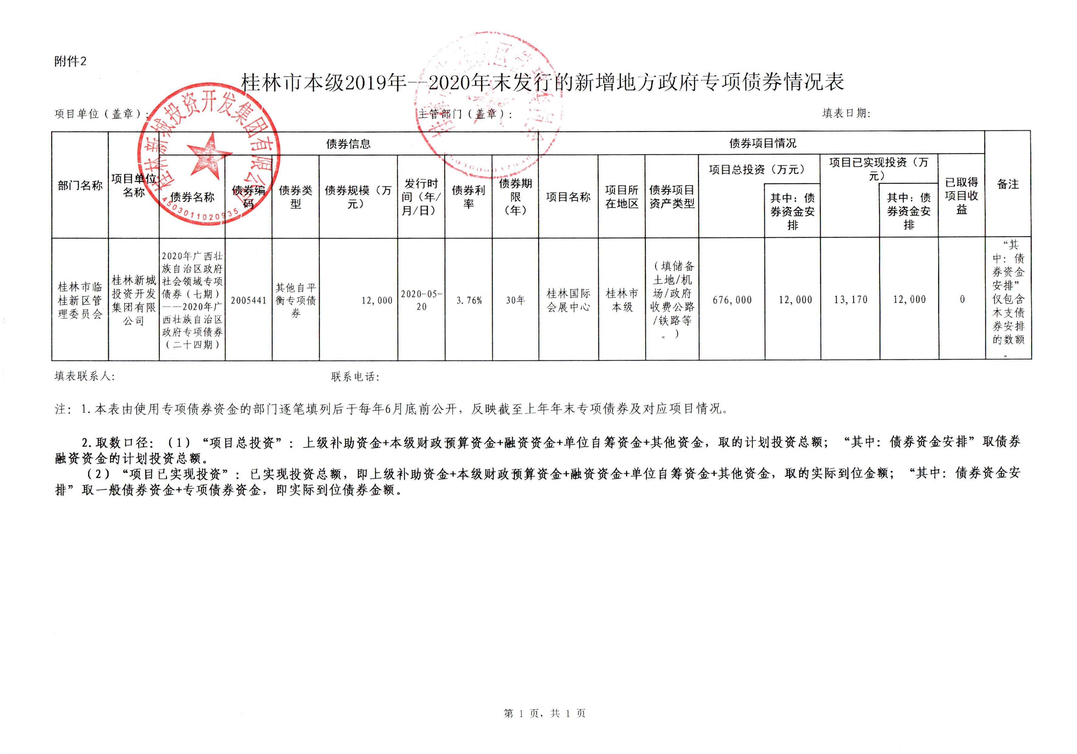 桂林市本級(jí)2019年--2020年末發(fā)行的新增地方政府專項(xiàng)債券情況表(臨桂新區(qū))