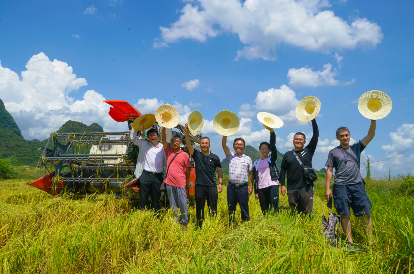 2021年9月5日上午,集團公司黨總支書記、董事長周道林現(xiàn)場察看了解桂林市臨桂區(qū)南邊山鎮(zhèn)桂花園旱改水項目首次水稻收割。
