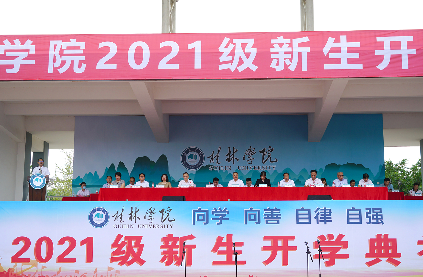 9月17日上午,桂林學(xué)院2021級新生開學(xué)典禮在學(xué)校田徑場舉行。2021級來自全國各地的3160名新生和新生親友通過現(xiàn)場與視頻直播相結(jié)合的形式,共同參加和觀看了開學(xué)典禮。桂林學(xué)院董事長周道林,桂林學(xué)院校長楊樹喆以及學(xué)校董事、監(jiān)事、校領(lǐng)導(dǎo)出席典禮。各二級學(xué)院、職能教輔部門主要負(fù)責(zé)人,各黨總支書記、副書記,全體新生輔導(dǎo)員,教師代表,校友代表參加典禮。開學(xué)典禮由校黨委書記唐文紅主持。