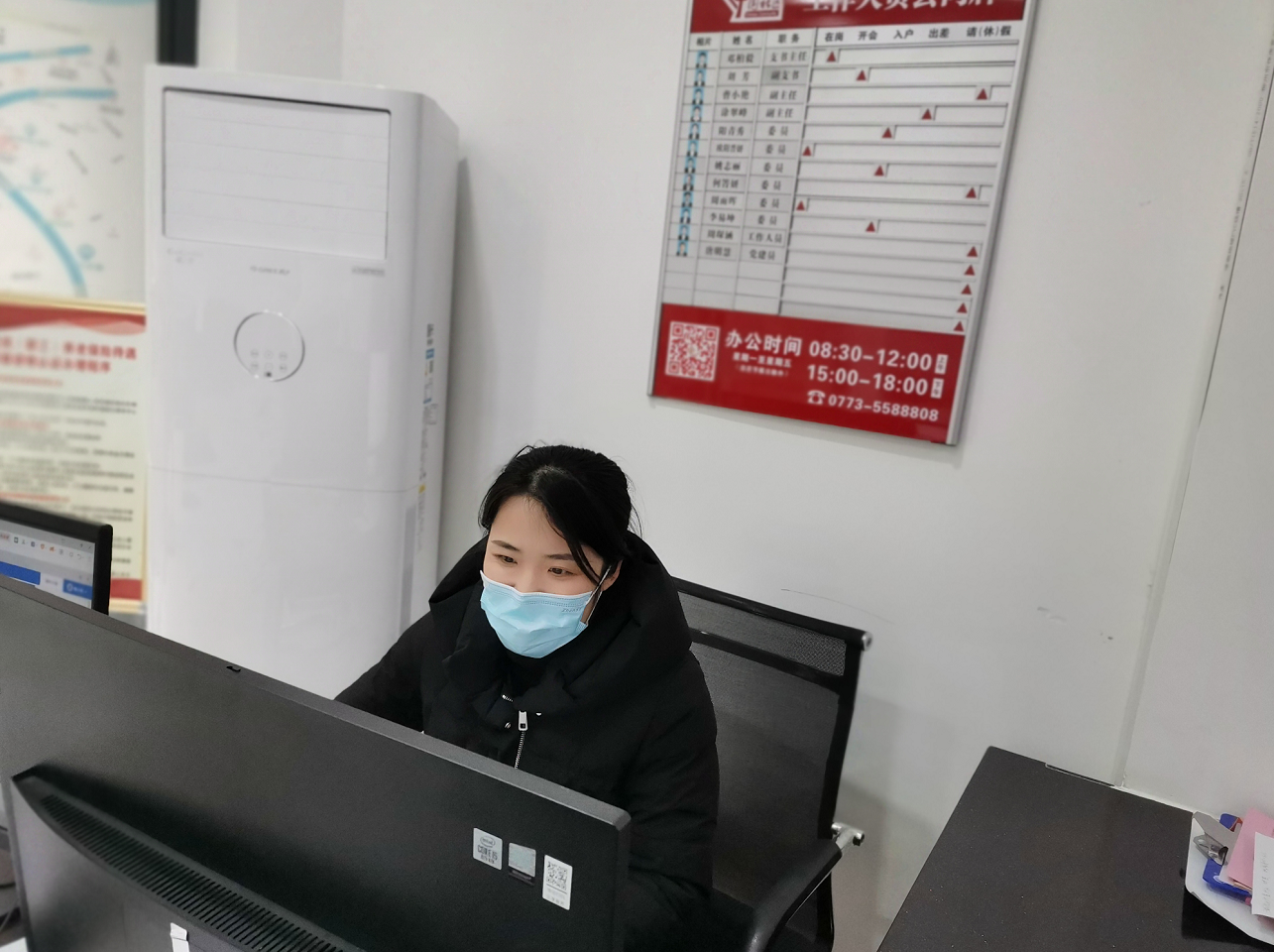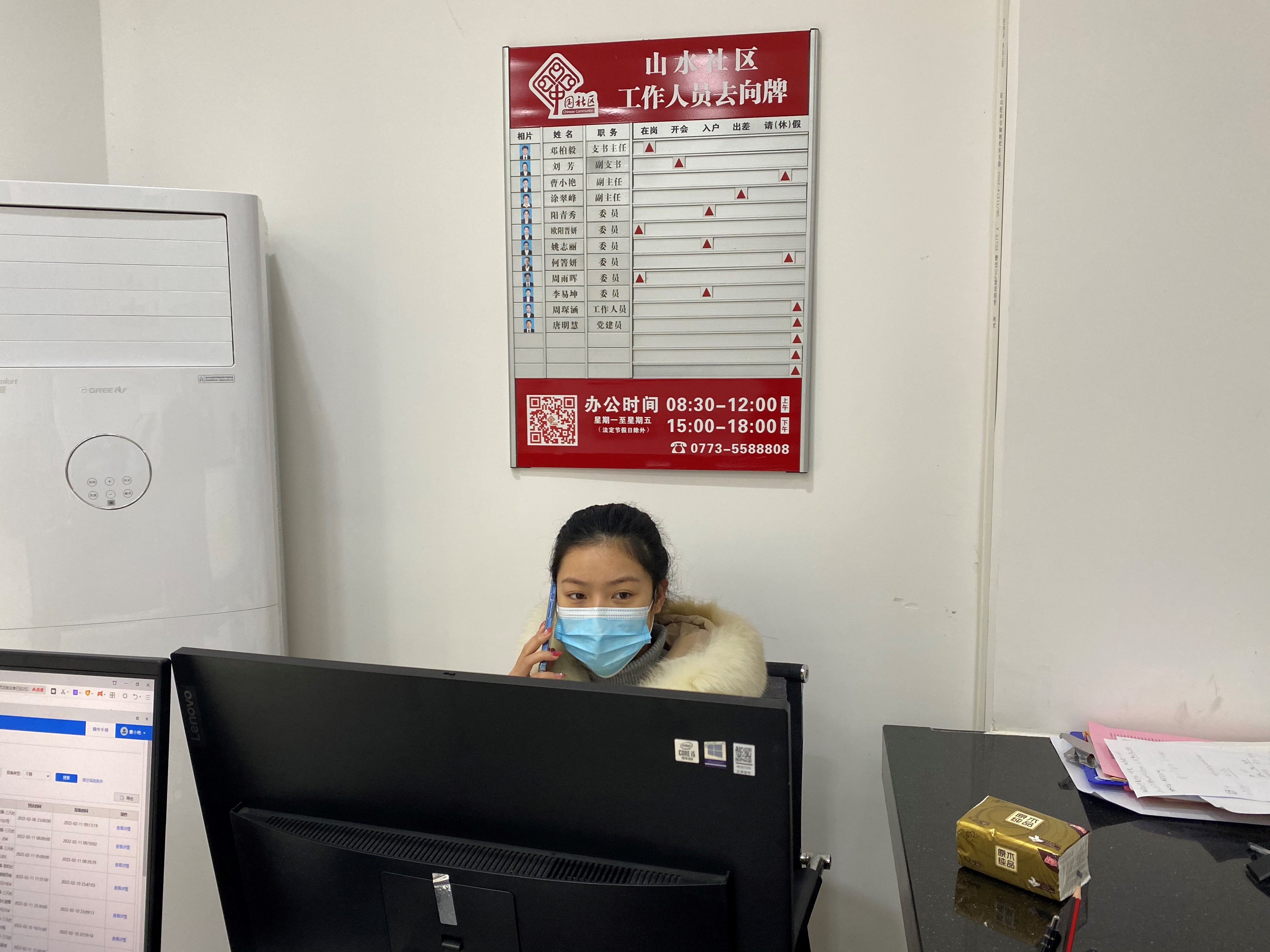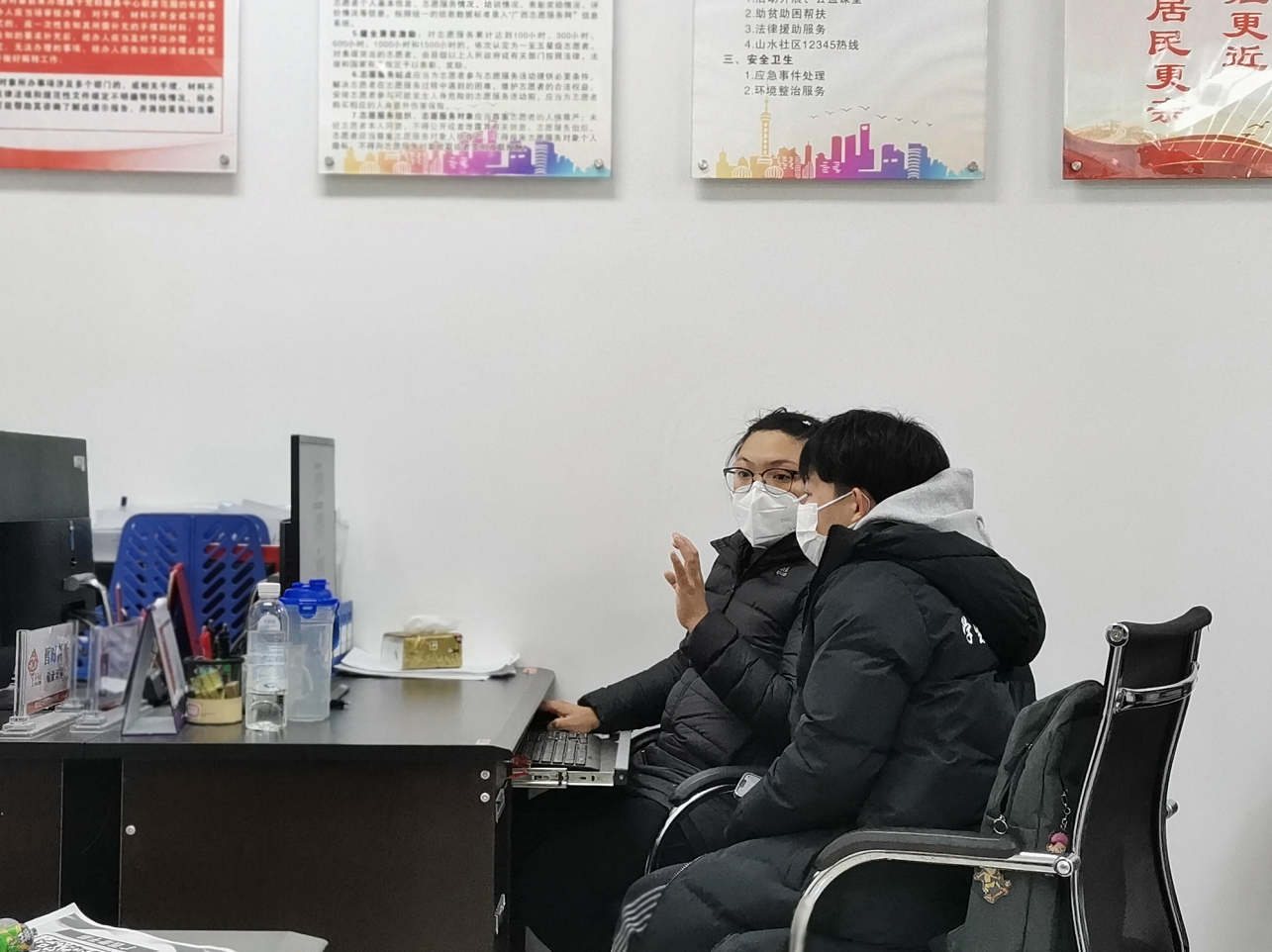 在山水社區(qū)黨群服務(wù)中心,志愿者們迅速投入到工作狀態(tài)中,為全力打贏疫情防控這場(chǎng)硬仗,大家從線上行程報(bào)備信息復(fù)核,到咨詢統(tǒng)計(jì)入桂、返桂人員核酸證明持證情況,各項(xiàng)工作緊張有序推進(jìn),很好的緩解了社區(qū)防疫相關(guān)工作存在的人手少、居住人口多、范圍大的緊張局面。
