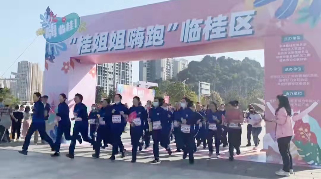 積極分子、共青團員參加“嗨?臨桂!”——“女神酷跑”活動志愿服務。