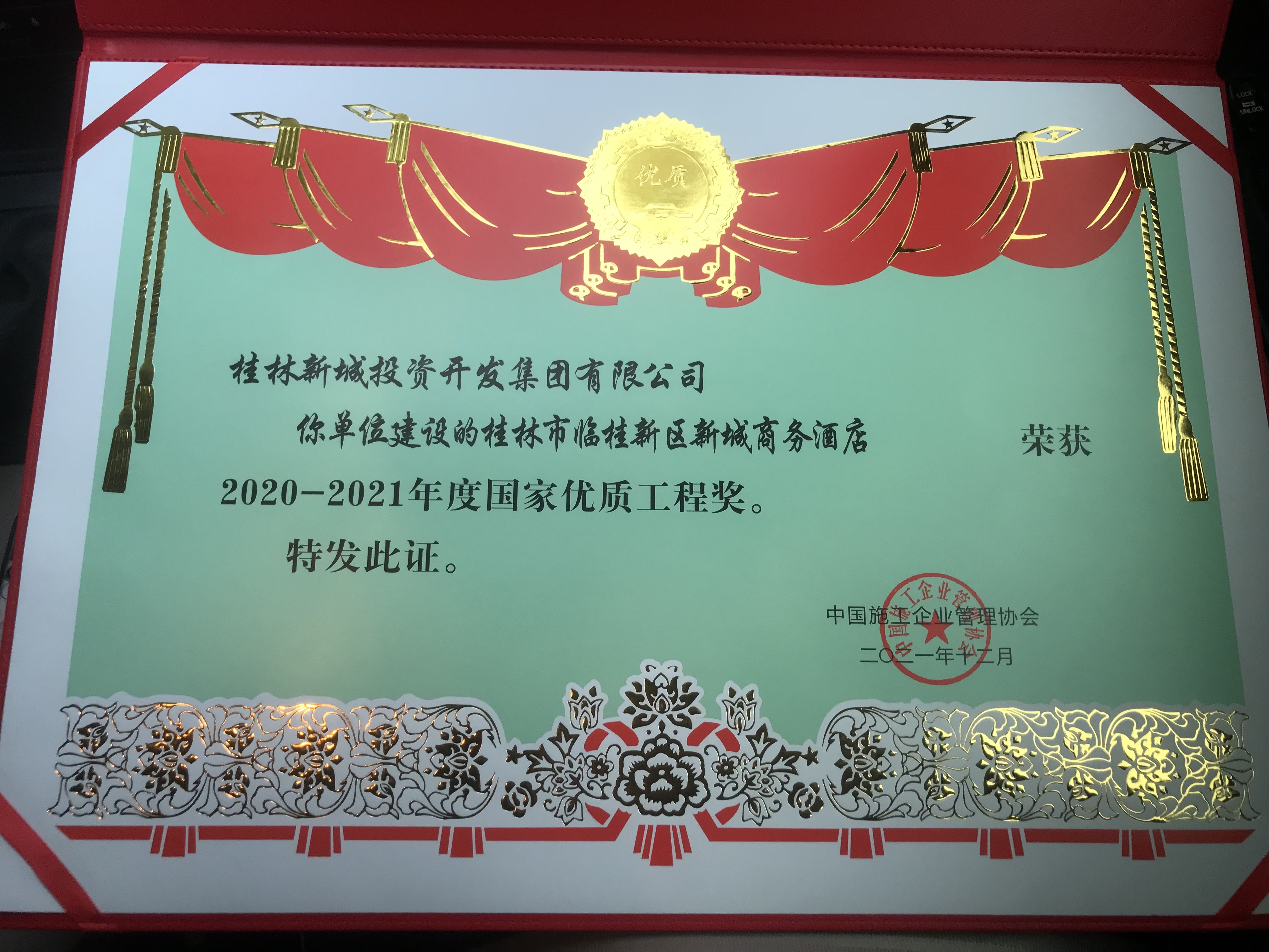 喜報!新城投集團(tuán)兩項(xiàng)工程榮獲2020-2021年度國家優(yōu)質(zhì)工程獎