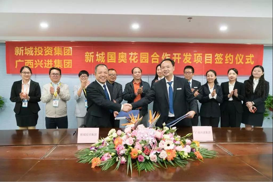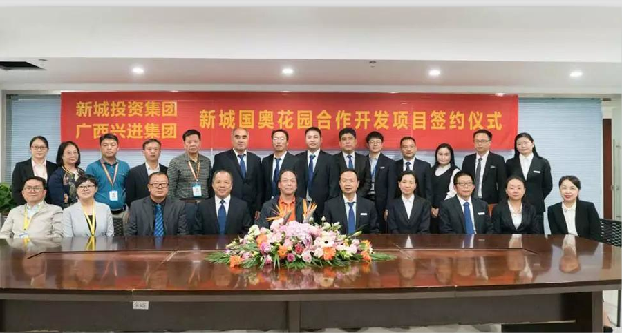 新城投資集團(tuán)與廣西興進(jìn)集團(tuán)簽訂新城國奧花園剩余土地合作開發(fā)協(xié)議書