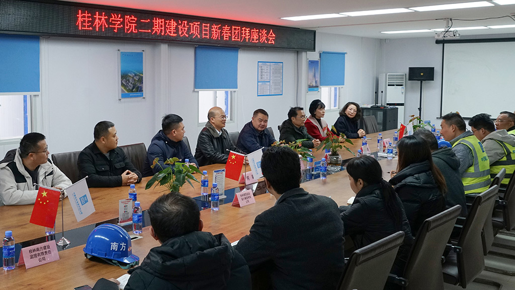 走訪結束后,在新城投集團領導班子的陪同下,陶毅一行來到桂林學院二期建設項目,向全體參建人員致以新春的誠摯祝福,并與各方參建單位開展新春團拜座談會。